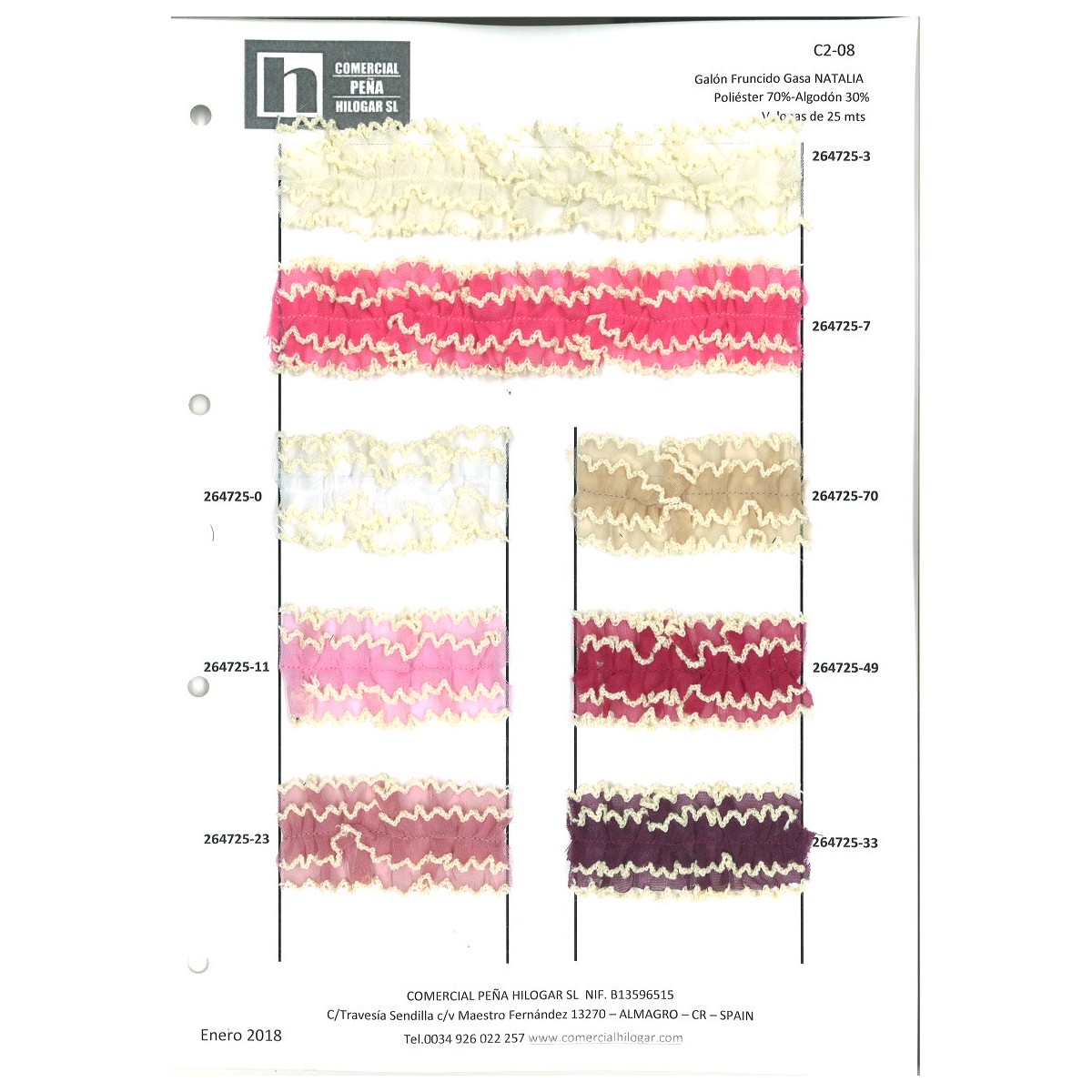 264725-0 GALON FRUNCIDO GASA NATALIA 30 MM. POLIESTER 60%-ALGODON 40% BLANCO/MARFIL Venta en piezas de 25.00 M