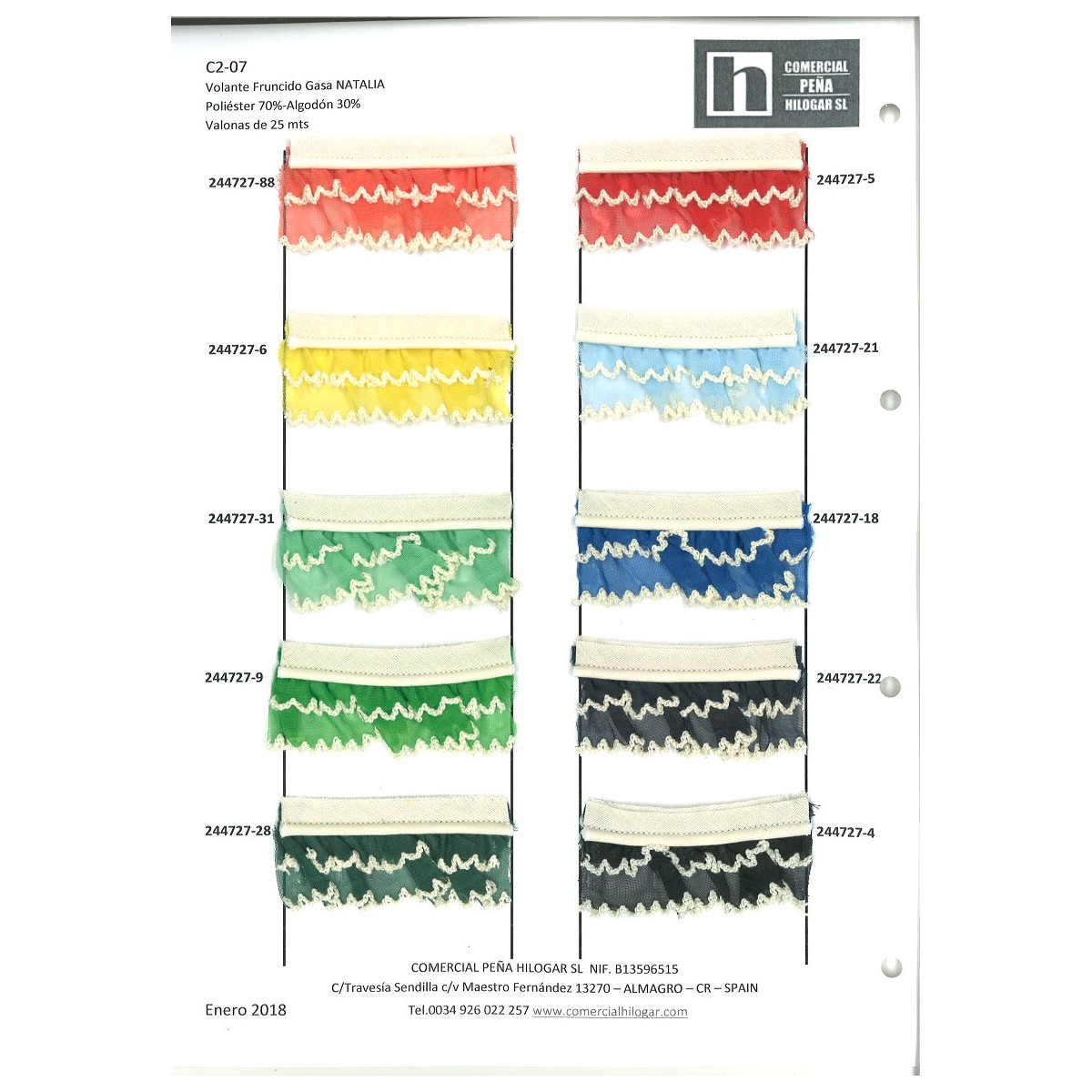 244727-22 VOLANTE FRUNCIDO GASA NATALIA 30 MM. POLIESTER 70%-ALGODON 30% MARINO/MARFIL Venta en piezas de 25.00 M