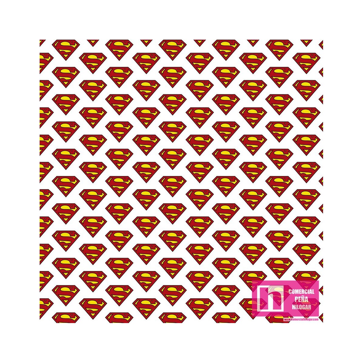 62727 TEJIDO ESTAMPADO LOGO SUPERMAN (01) 1.50 M. ALGODON 100%. 180 HILOS. BLANCO Venta en piezas de 10.00 M