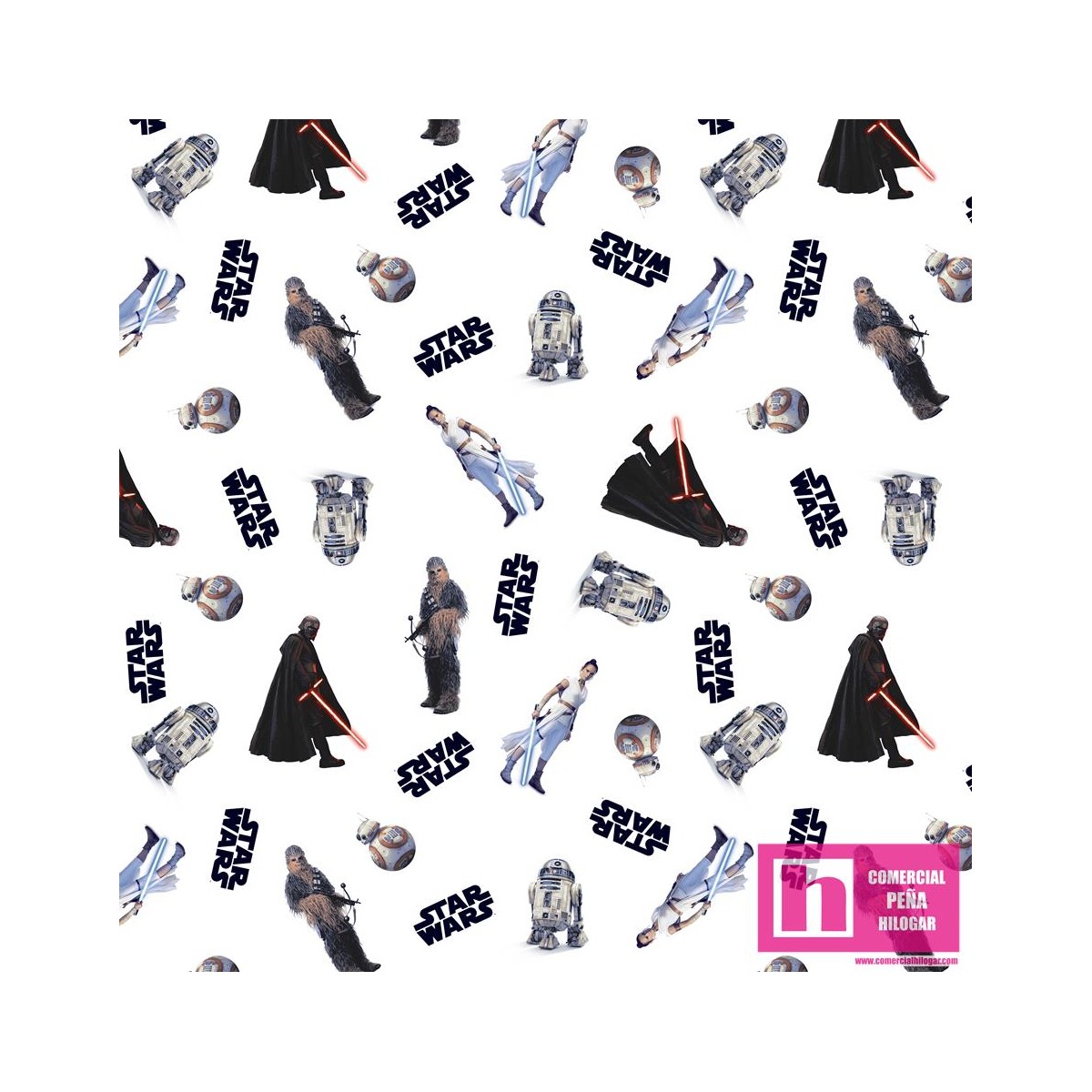 62748 TEJIDO ESTAMPADO STAR WARS (02) 1.50 M. ALGODON 100%. 180 HILOS. BLANCO/NEGRO Venta en piezas de 10.00 M