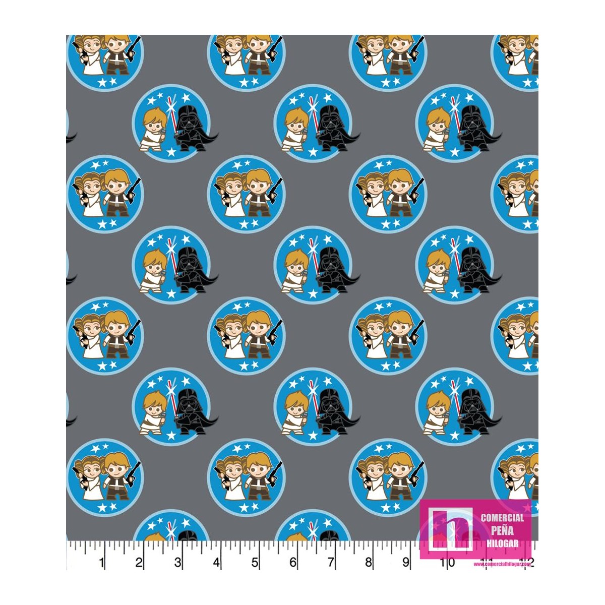 P86-73010428JAS PATCH. AMERICANO STAR WARS KAWAII DUO TOKENS (01) 110 CM. ALGODON 100% GRIS Venta en piezas de 10.00 M