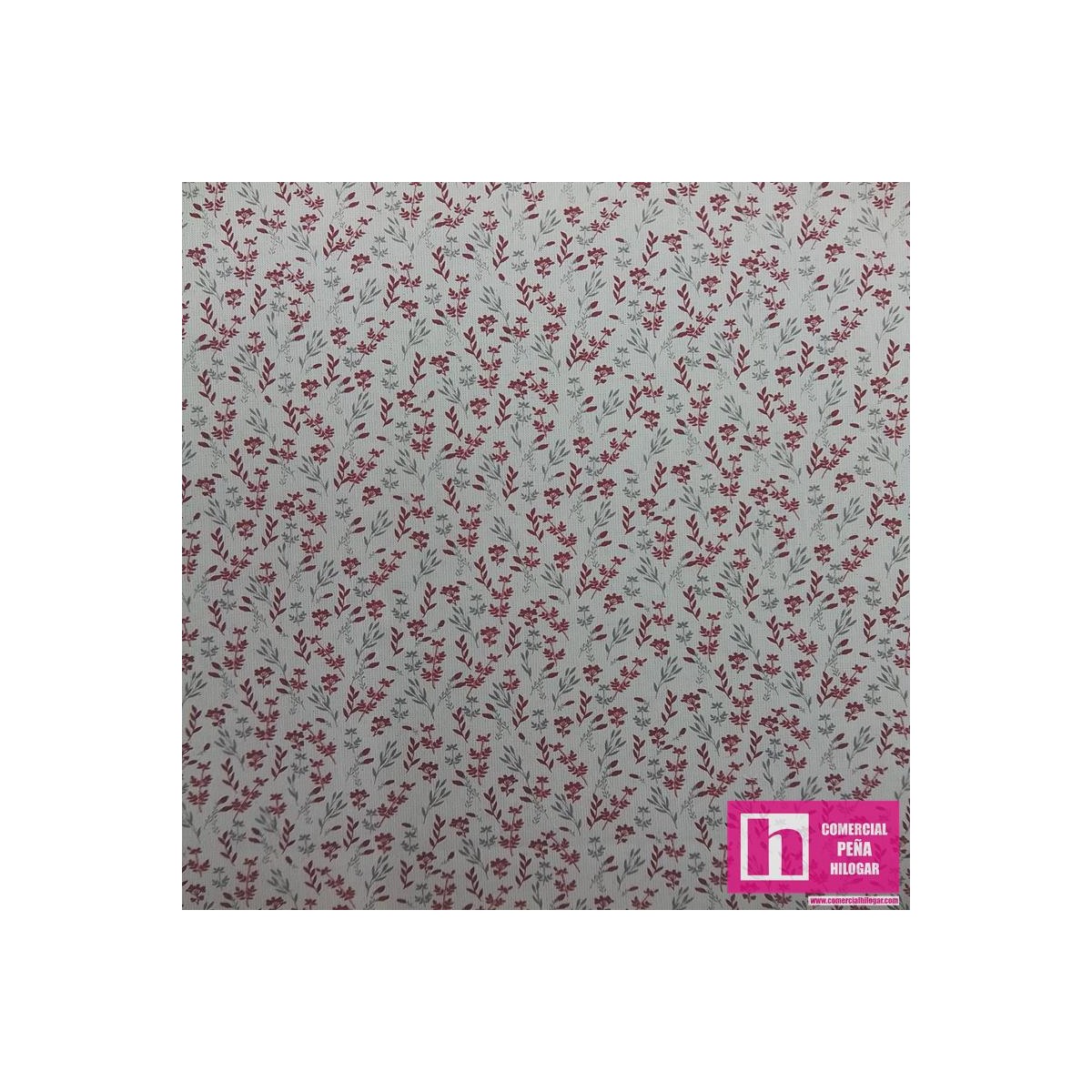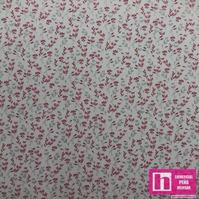64391 TEJIDO ESTAMPADO SESAMO (07) 150 CM. 145 GR/M2. ALGODON 100% NATURAL/GRANATE Venta en piezas de 10.00 M