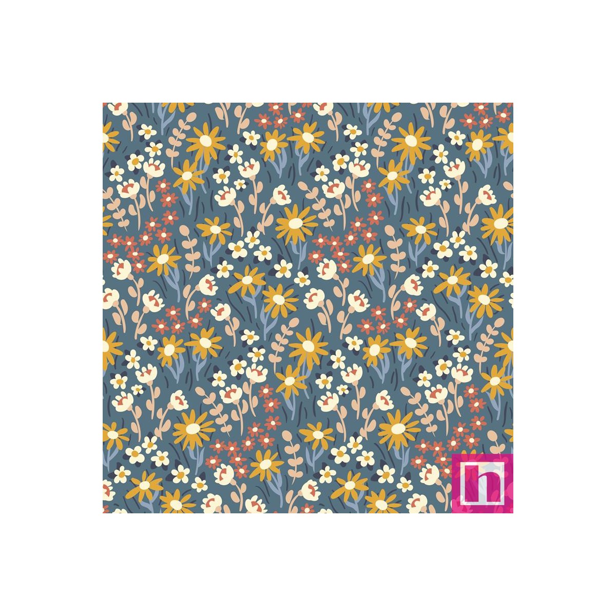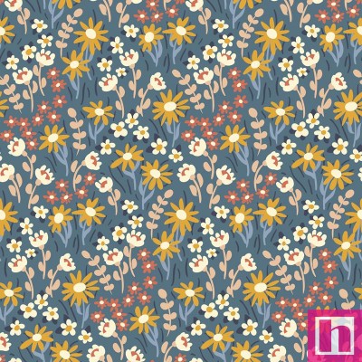 66475 TEJIDO ESTAMPADO LIBERTY DAMARIS (04) 1.40 M. 110 GR/M2. ALGODON 100% AZUL/ALBERO Venta en piezas de 5.00 M