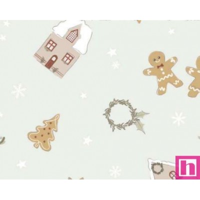 66857 TEJIDO ESTAMPADO CLAUS (01) 1.50 M. 115 GR/M2. ALGODON 100% NIEVE Venta en piezas de 6.00 M