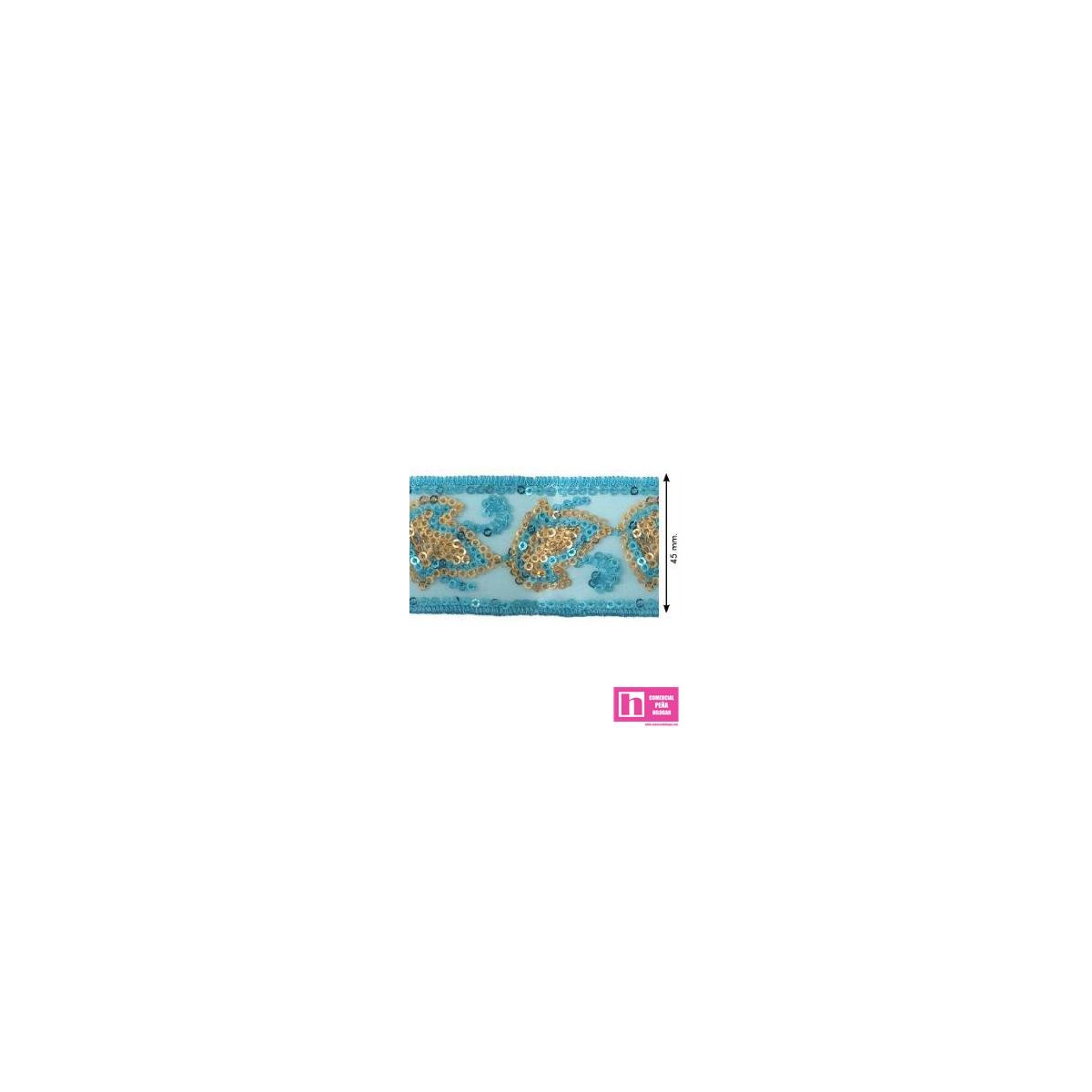 460303-45-12 GALON LENTEJUELAS FANTASIA ABARNE 45 MM. POLIESTER-PVC TURQUESA Venta en piezas de 13.70 M