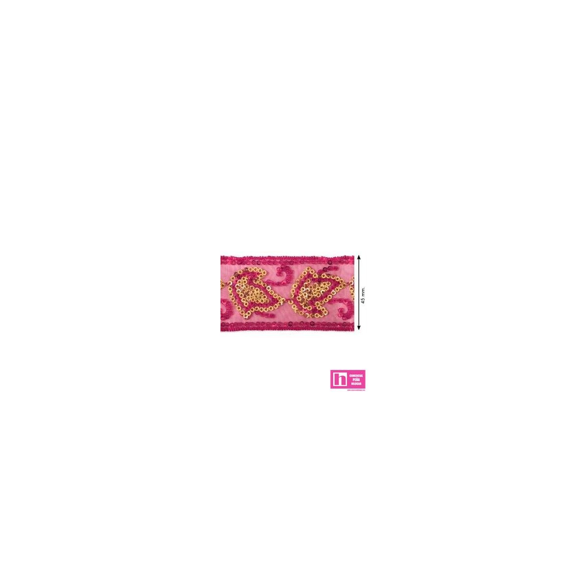 460303-45-7 GALON LENTEJUELAS FANTASIA ABARNE 45 MM. POLIESTER-PVC FUCSIA Venta en piezas de 13.70 M