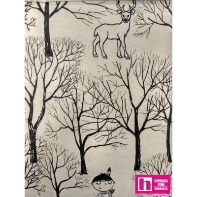 55137 ZAHRA LONETA PANAMA ESTAMPADO DIGITAL (03) 1.40 M. ALGODON 100% NATURAL/NEGRO Venta en piezas de 7.00 M