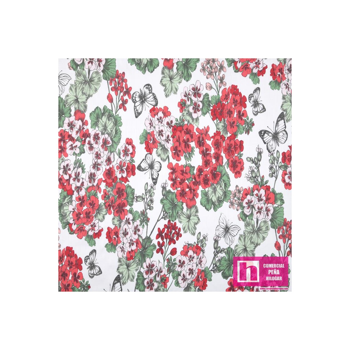 64449 LONETA ESTAMPADA GERANIUM (02) 1.60 M. 210 GR/M2 ALGODON 100% MARFIL/ROJO Venta en piezas de 6.00 M