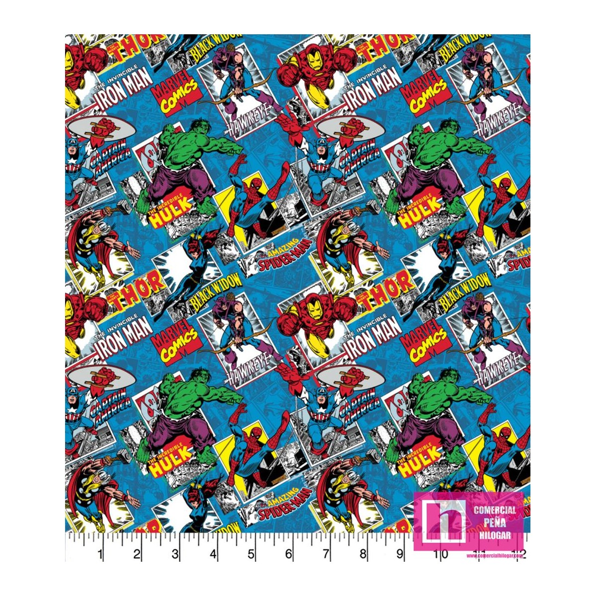 P86-13020874JAS PATCH. AMERICANO MARVEL COMIC BURST (04) 110 CM. ALGODON 100% AZUL Venta en piezas de 10.00 M