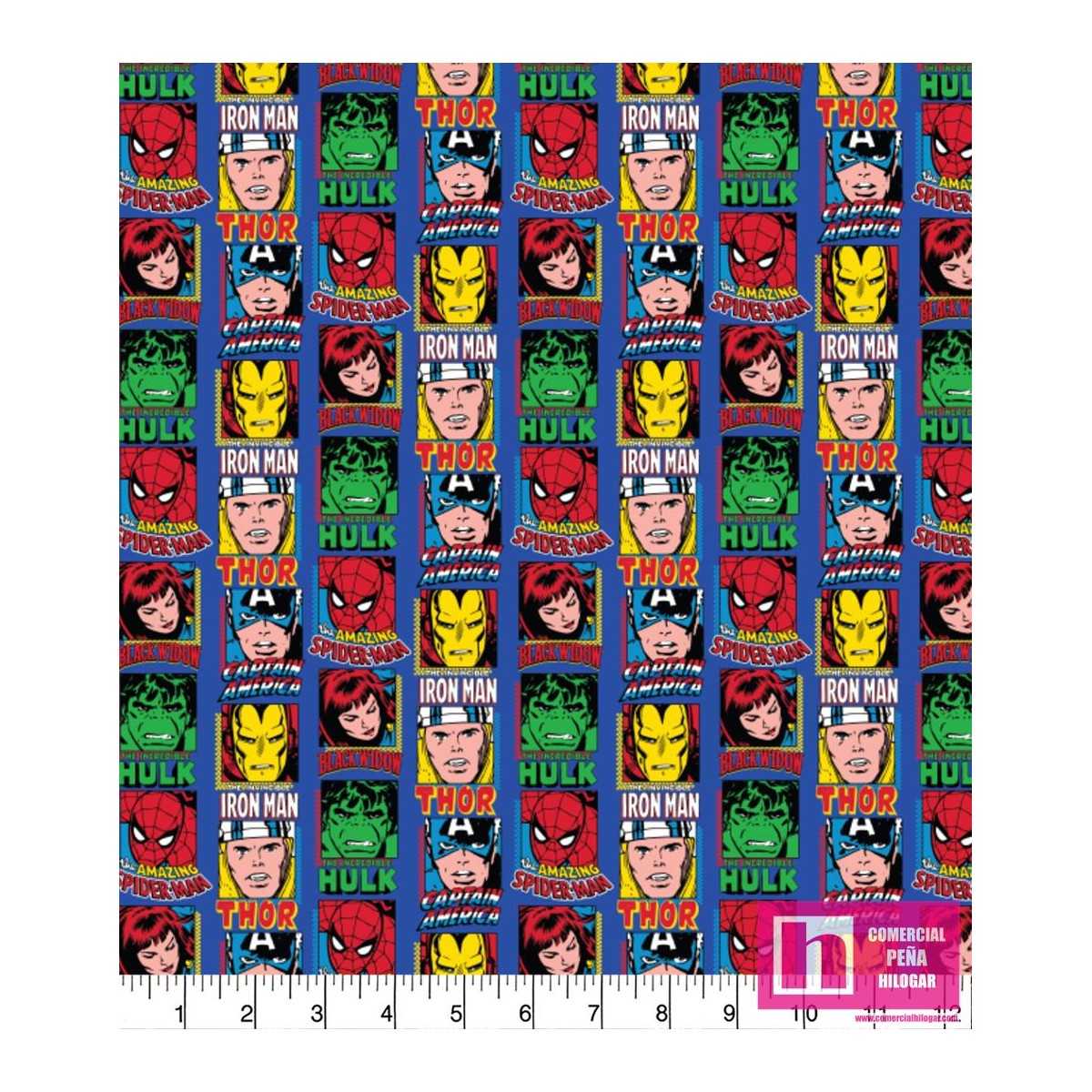 P86-13020205 PATCH. AMERICANO MARVEL COMIC CHARACTERS STONE (06) 110 CM. ALGODON 100% MULTI Venta en piezas de 10.00 M