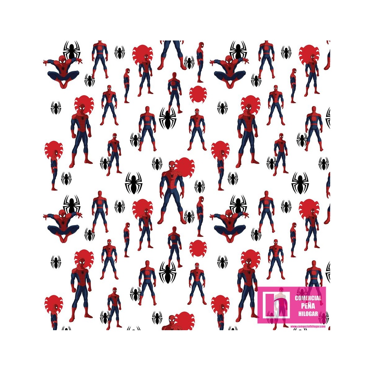 62736 TEJIDO ESTAMPADO SPIDERMAN ARAÑAS (04) 1.50 M. ALGODON 100%. 180 HILOS. BLANCO/ROJO Venta en piezas de 10.00 M