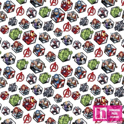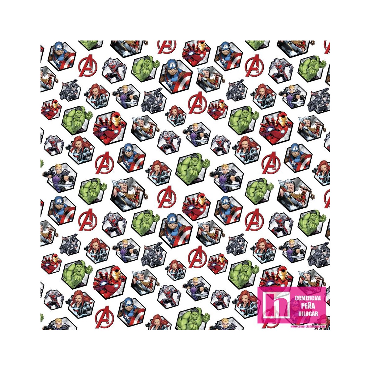 62731 TEJIDO ESTAMPADO ADVENGERS (01) 1.50 M. ALGODON 100%. 180 HILOS. BLANCO Venta en piezas de 10.00 M