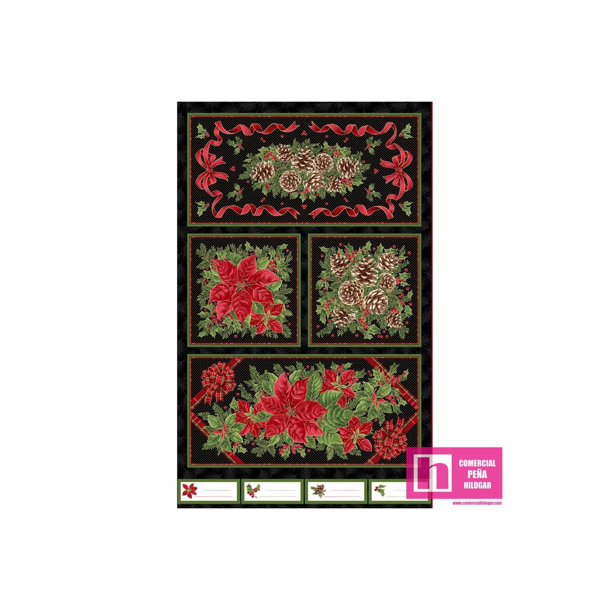 P17-MASM10180-J PATCH. AMERICANO EVERGREEN BOWS (01) PANEL 70x110 ALGODON 100% NEGRO/ROJO METALLIC Venta en piezas de 7.00 M