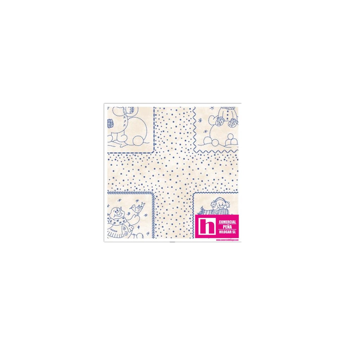 P17-MAS8411-E PATCH.AMERIC. ROLY-POLY SNOWMEN (01) 110 CM. ALGODON 100% MARFIL/AZUL Venta en piezas de 7.00 M