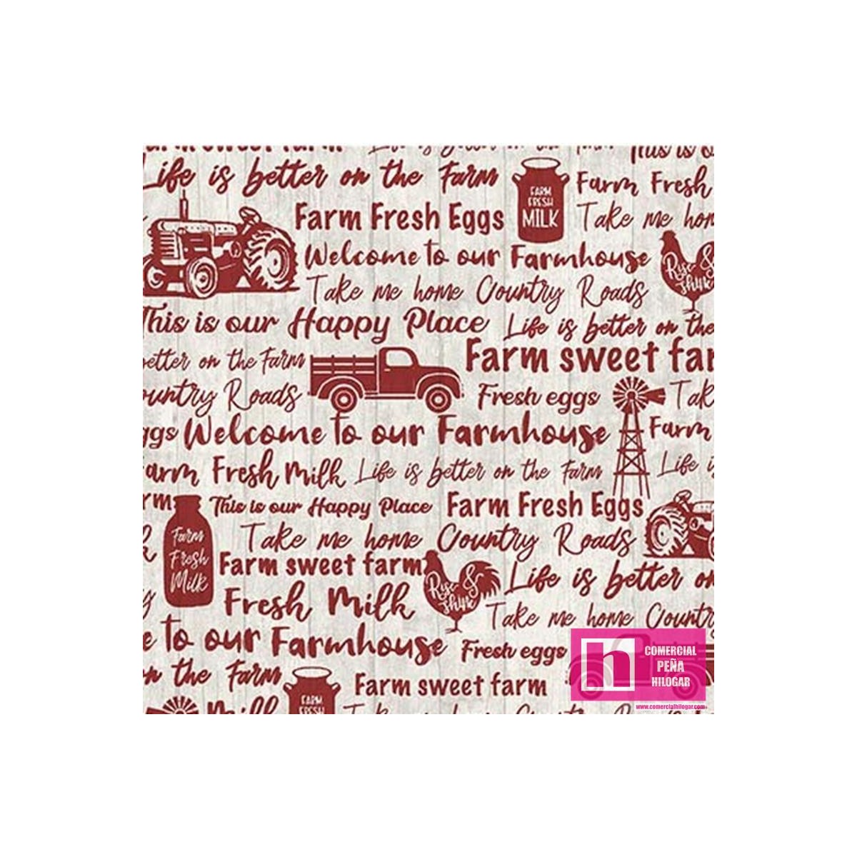 63776 PATCH.AMERICANO LIFE IS BETTER ON THE FARM (06) 110 CM. ALGODON 100% ROJO Venta en piezas de 6.80 M