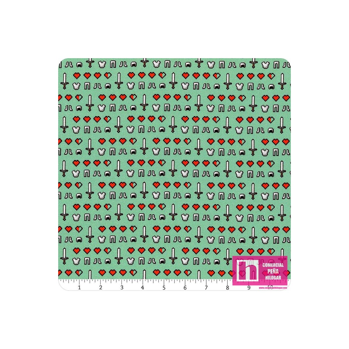 4. 63365 TEJIDO MINECRAFT HEARTS (02) 110 CM. ALGODON 100% AGUA Venta en piezas de 7.00 M