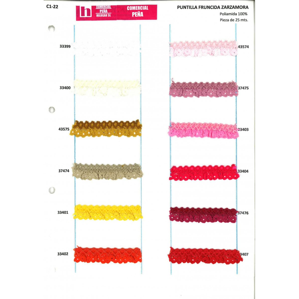 64724 PUNTILLA FRUNCIDA PIQUILLO ZARZAMORA 15 MM. POLIAMIDA 100% CORAL Venta en piezas de 25.00 M
