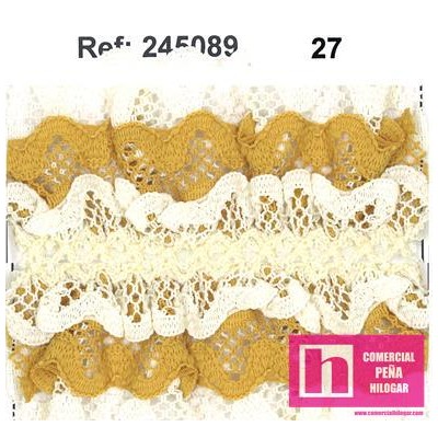 245089-27 GALON FRUNCIDO OMERO TRIO 60 MM. POLIAMIDA 100% MARFIL/ALBERO Venta en piezas de 25.00 M