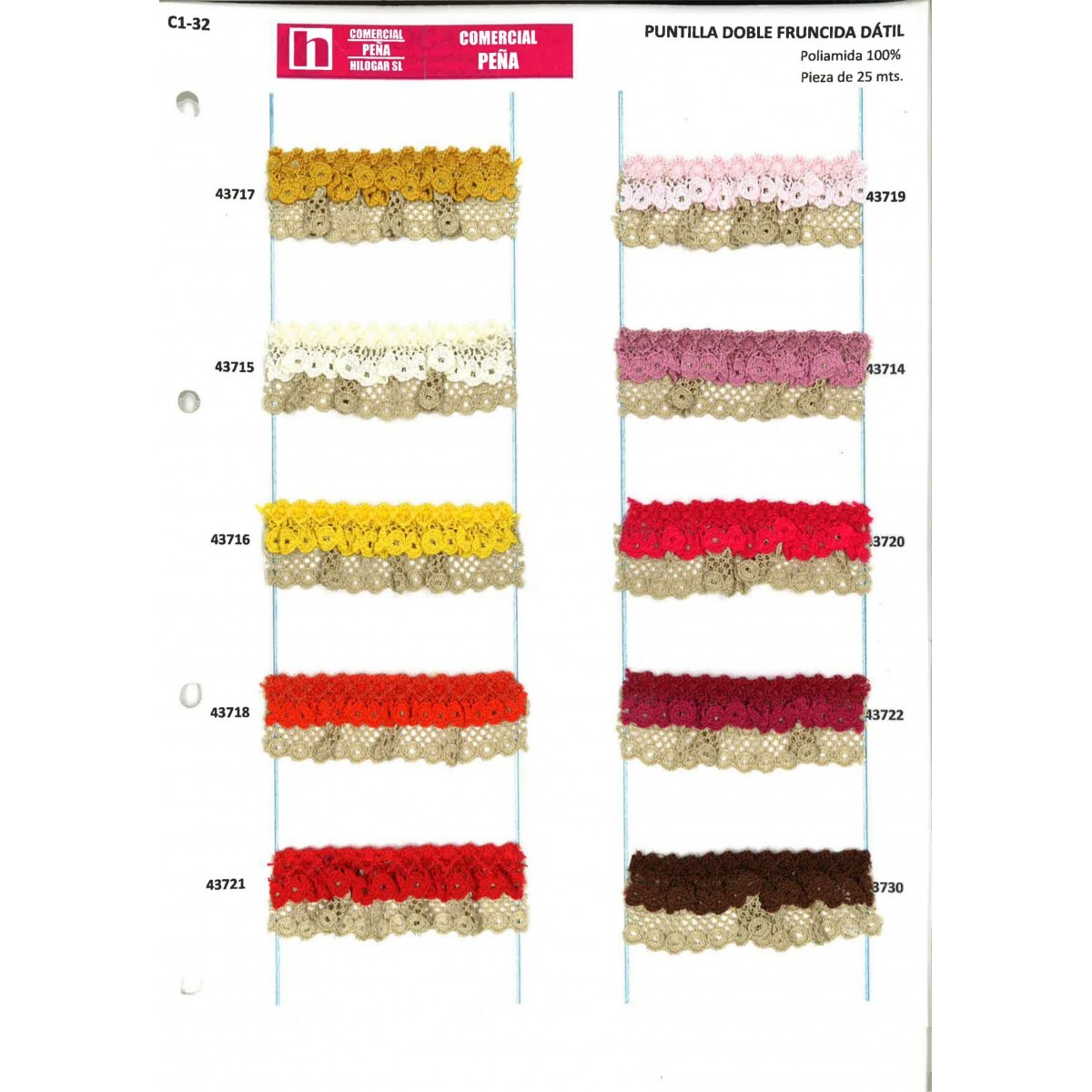 Vista rápida 43715 PUNTILLA DOBLE FRUNCIDA PIQUILLO DATIL 25MM. POLIAMIDA 100% CAMEL/MARFIL Venta en piezas de 25.00 M