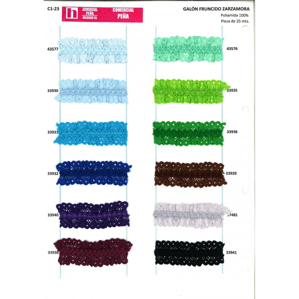 43577 GALON FRUNCIDO PIQUILLO ZARZAMORA 25MM. POLIESTER 100% CIELO Venta en piezas de 25.00 M