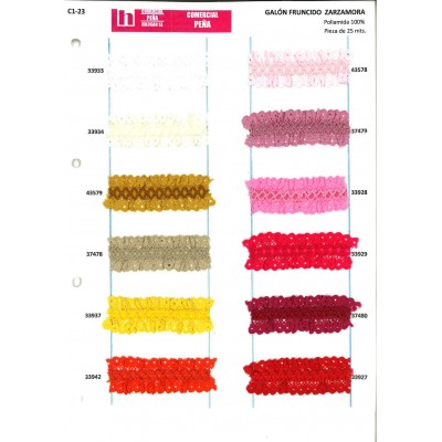 37479 GALON FRUNCIDO PIQUILLO ZARZAMORA 25MM. POLIESTER 100% MAQUILLAJE Venta en piezas de 25.00 M