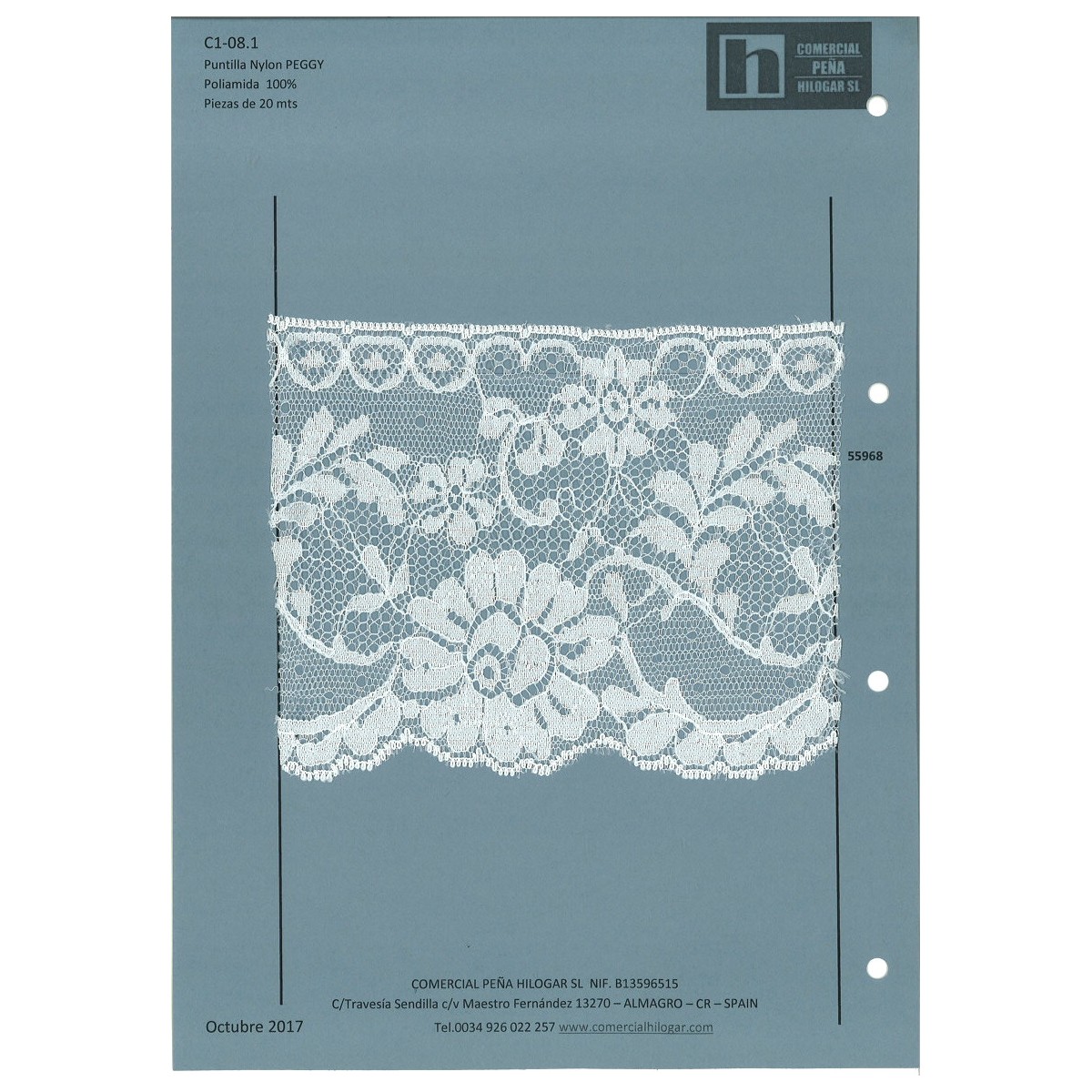 55968 PEGGY PUNTILLA NYLON 120 MM. POLIAMIDA 100% MARFIL Venta en piezas de 20.00 M
