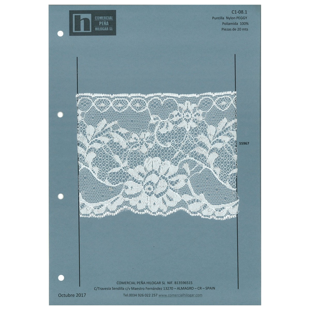 55967 PEGGY PUNTILLA NYLON 120 MM. POLIAMIDA 100% BLANCO Venta en piezas de 20.00 M
