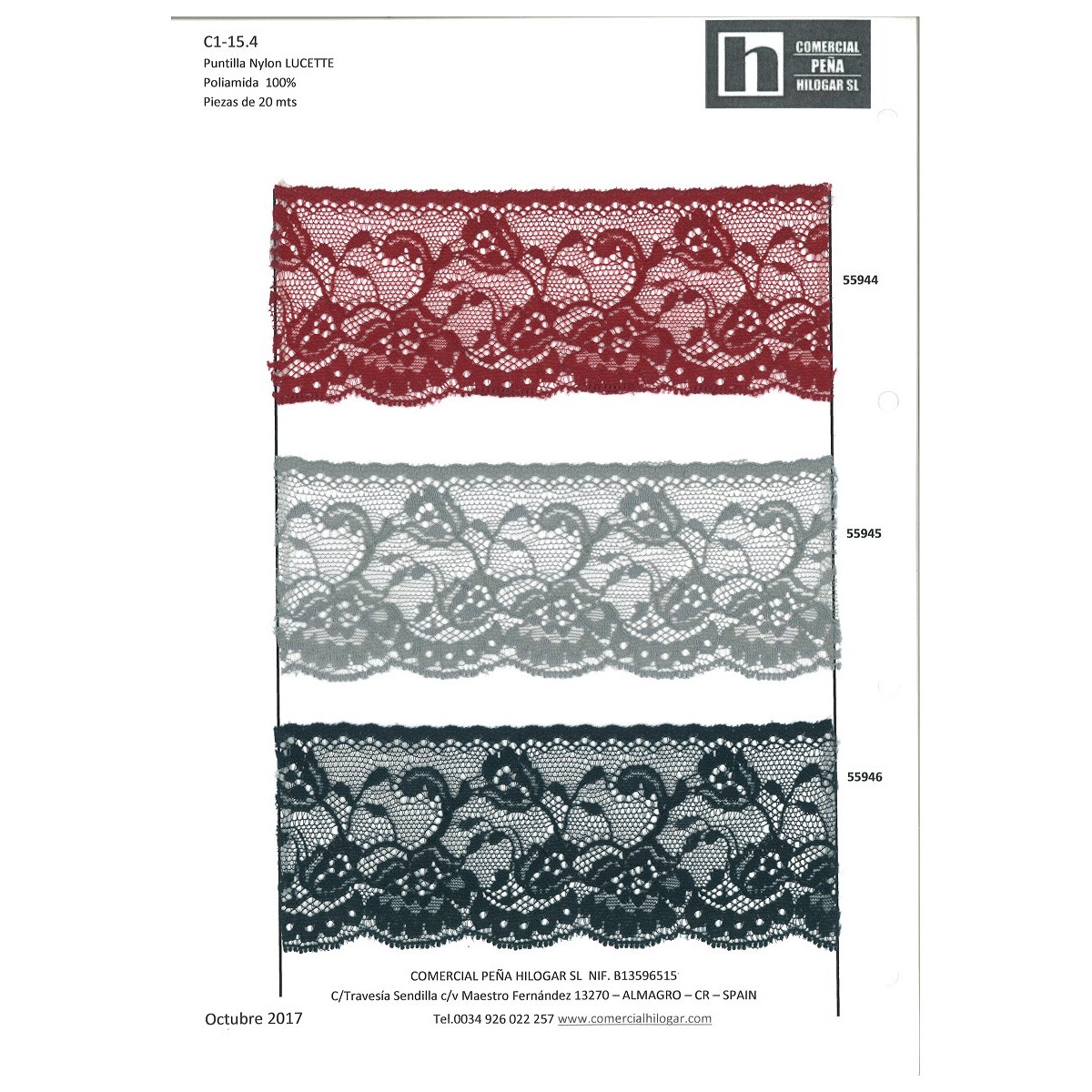 55946 LUCETTE PUNTILLA NYLON 55 MM. POLIAMIDA 100% MARINO Venta en piezas de 20.00 M