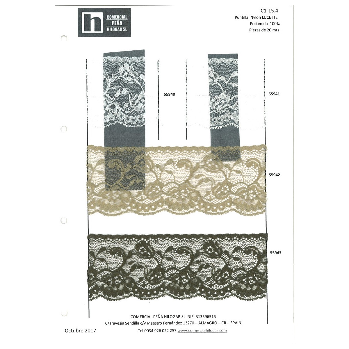55940 LUCETTE PUNTILLA NYLON 55 MM. POLIAMIDA 100% BLANCO Venta en piezas de 20.00 M