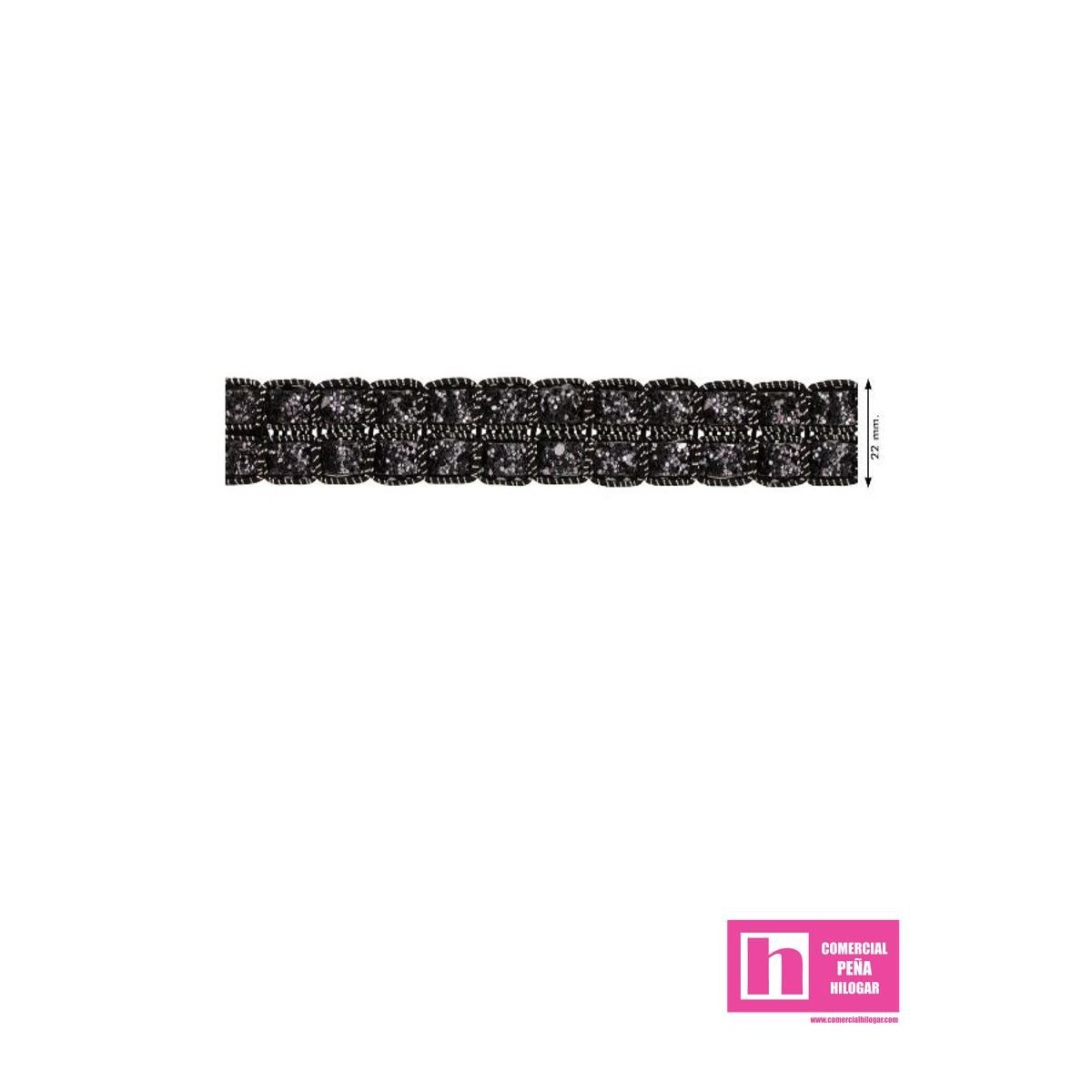 115110-2-2 GALON FANTASIA EUDORA 25 MM. POLIESTER 100% NEGRO/PLATA Venta en piezas de 10.00 M