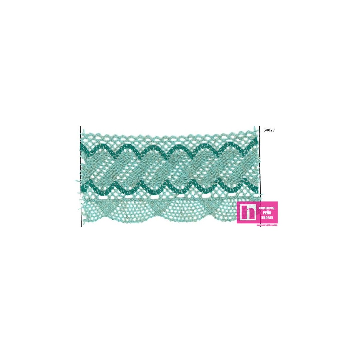 54027 LINA PUNTILLA BOLILLO 75 MM. POLIESTER 50%-LINO 50% AGUA/VERDE Venta en piezas de 15.00 M