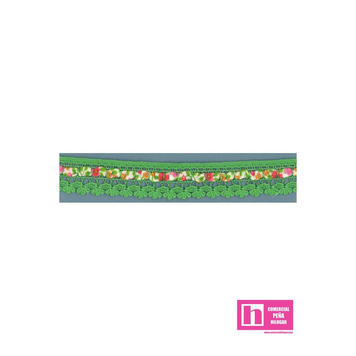 53297 JIANNA PUNTILLA BOLILLO+CINTA 20 MM. POLIESTER 75%-POLIAMIDA 15% VERDE Venta en piezas de 10.00 M