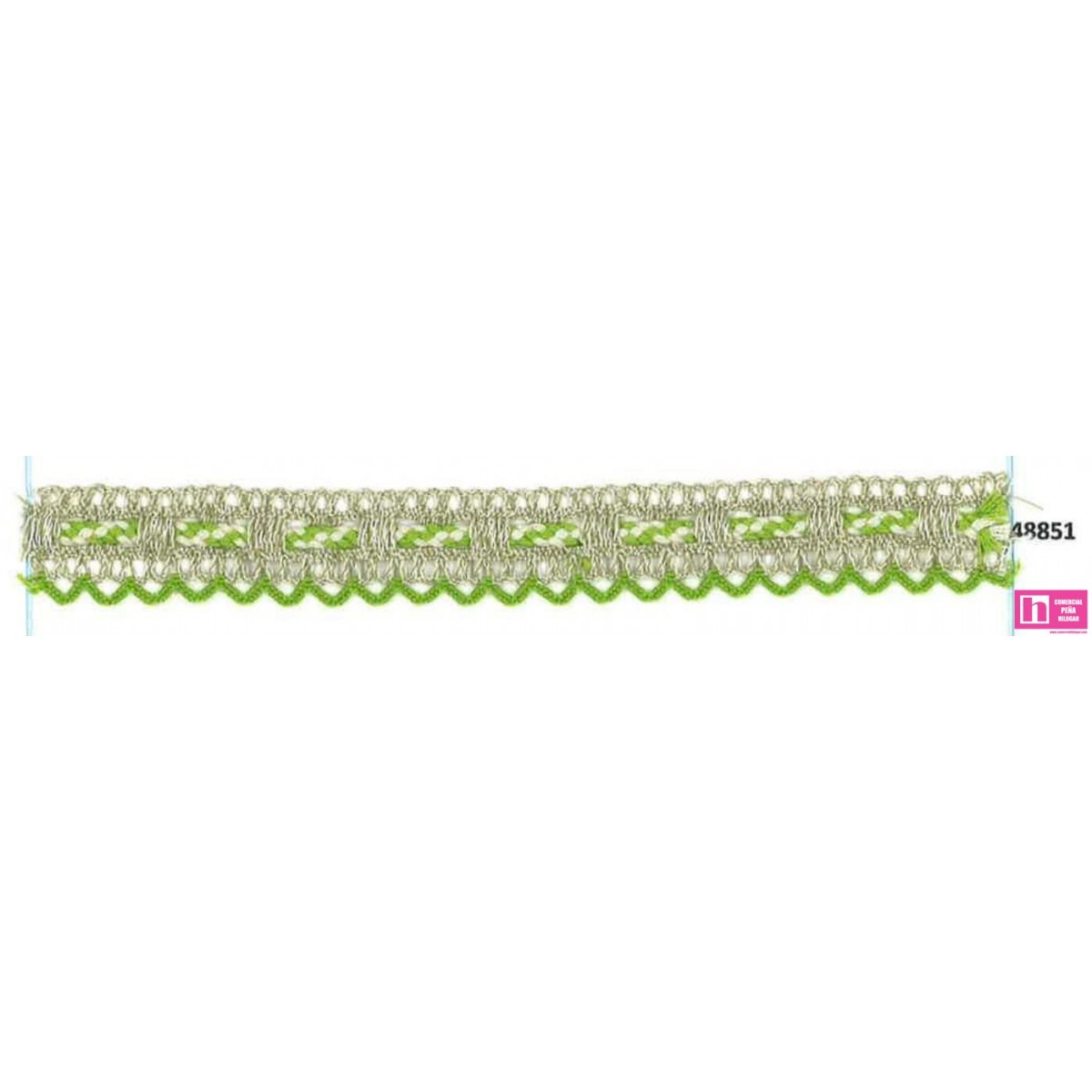 48851 8941/LI10/4TR17_MORENA PUNTILLA BOLILLO POLIESTER 50%-ALGODON 50% PISTACHO/LINO Venta en piezas de 10.00 M