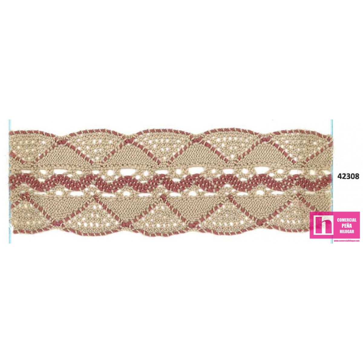 42308 ENTREDOS BOLILLO ADELFA POLIESTER 100% BEIG/MAQUILLAJE Venta en piezas de 30.00 M