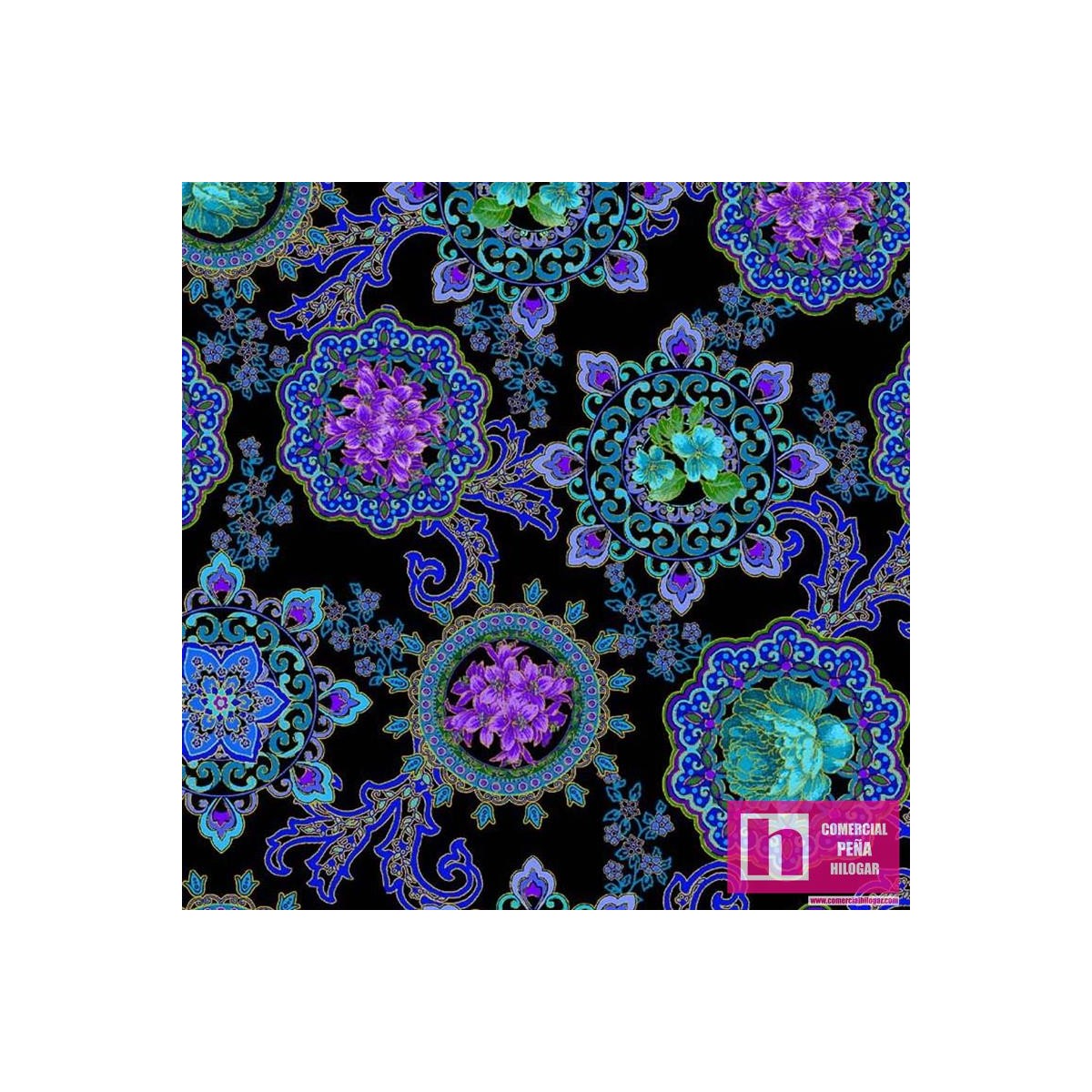 64596 PATCH.AMERICANO OPULENT FLORAL (03) 110 CM. ALGODON 100% NEGRO/AZUL Venta en piezas de 6.80 M