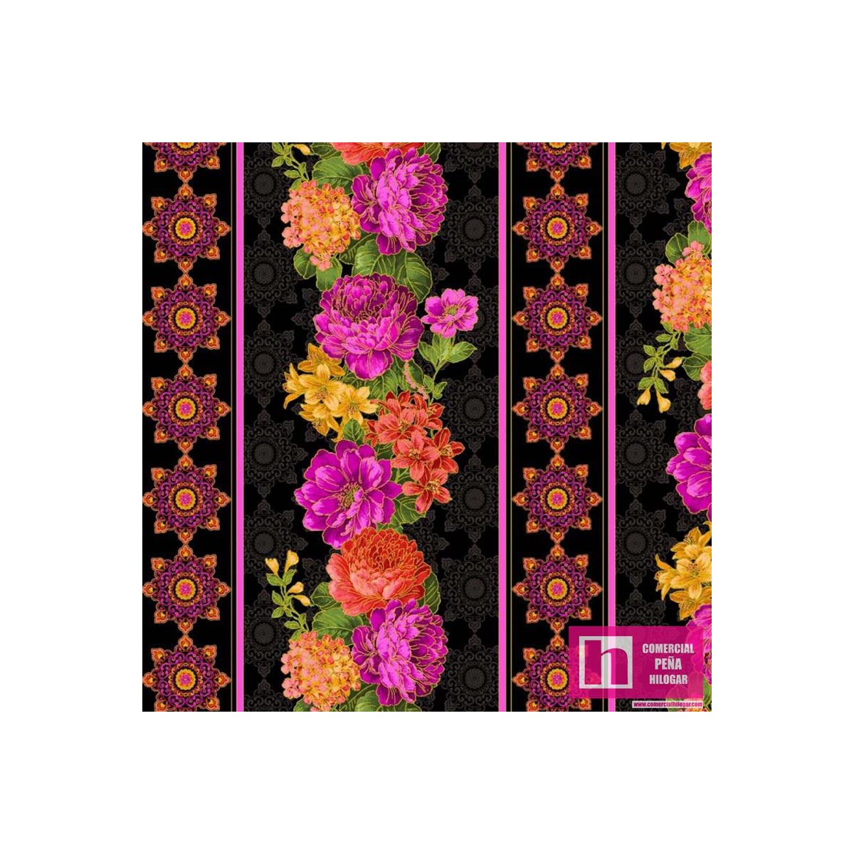 64608 PATCH.AMERICANO OPULENT FLORAL (15) 110 CM. ALGODON 100% NEGRO/ROJO Venta en piezas de 6.80 M