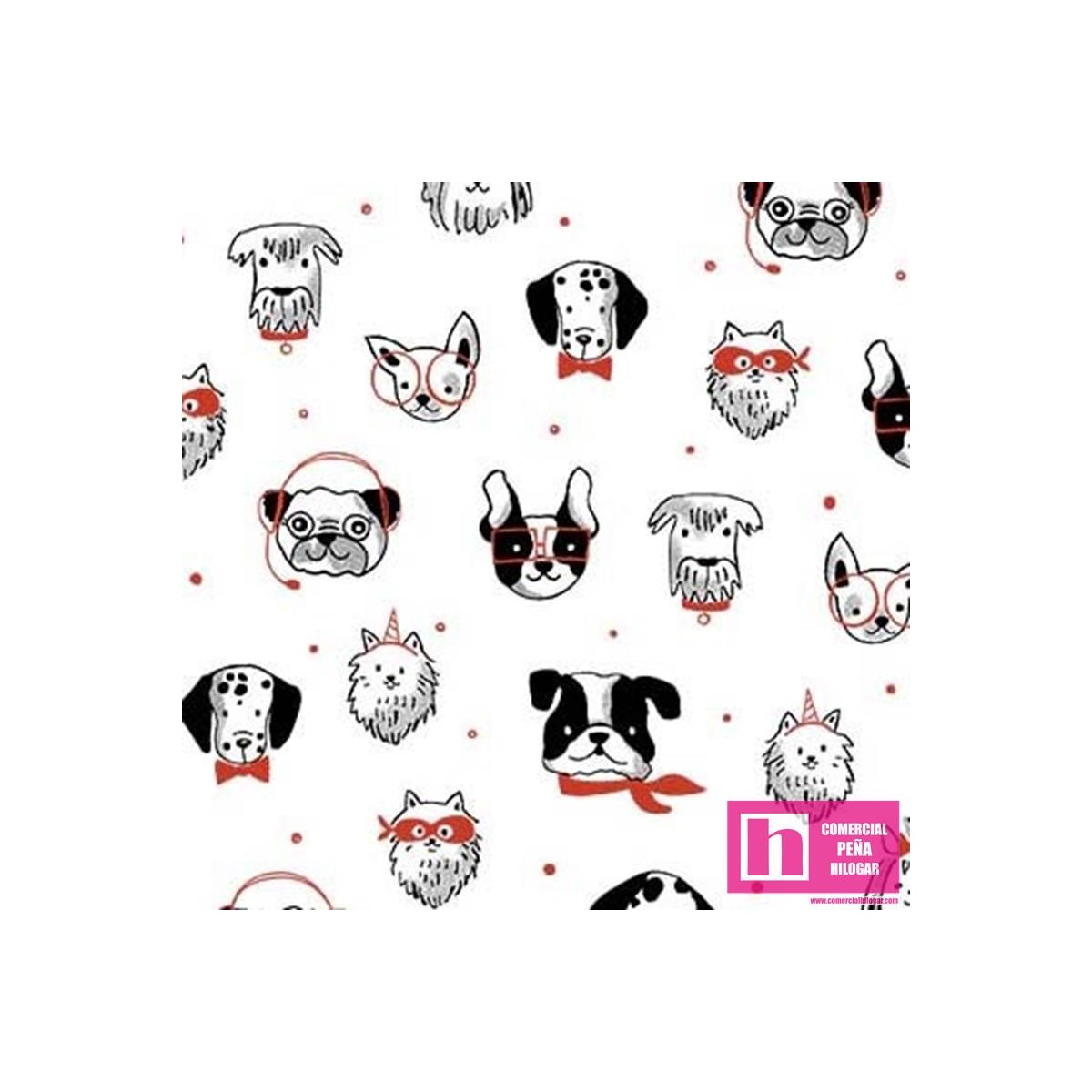 64682 PATCH.AMERICANO BOW-WOW-WOW (09) 110 CM. ALGODON 100% BLANCO/ROJO Venta en piezas de 6.80 M