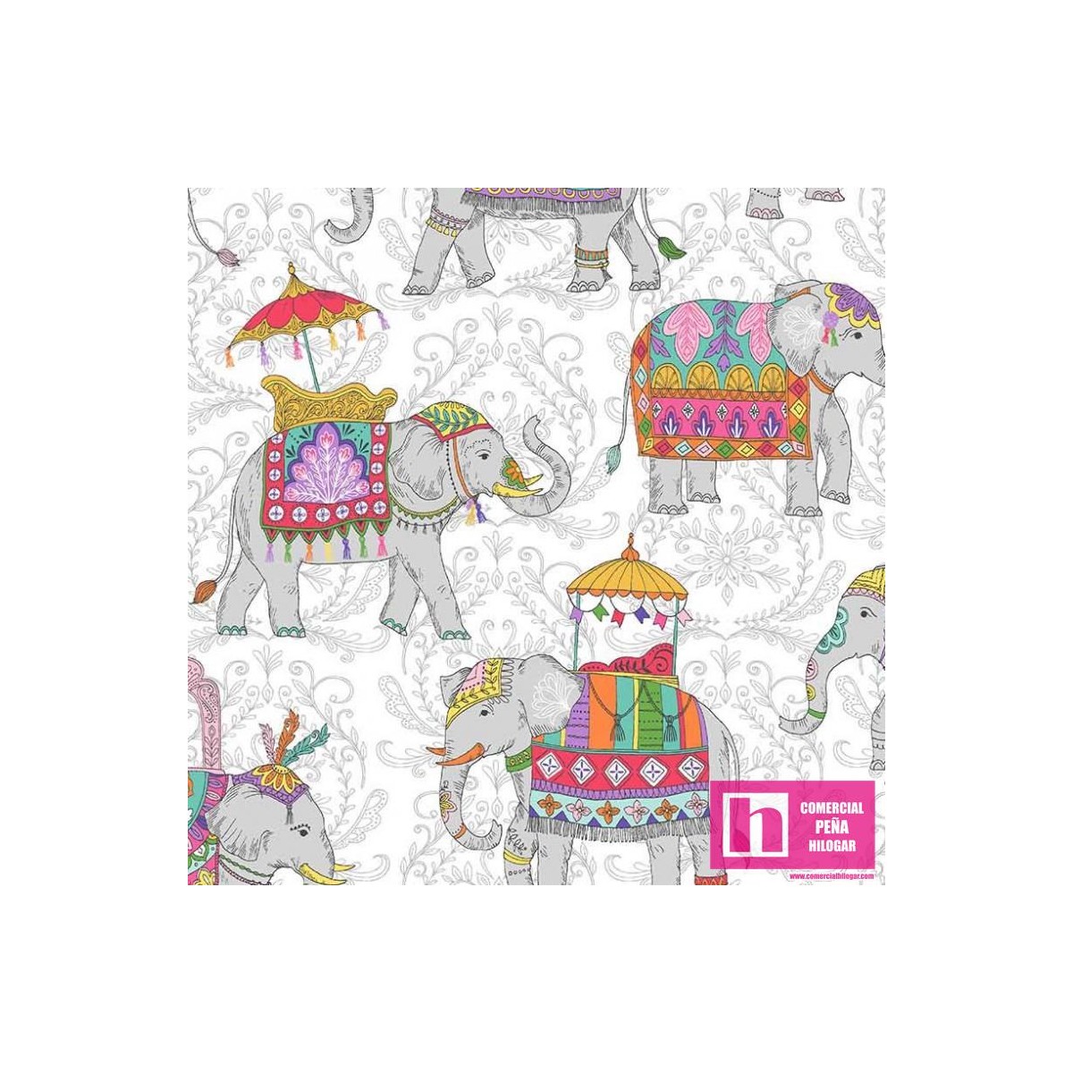 64845 PATCH.AMERICANO ELEPHANT CAVALCADE (01) 110 CM. ALGODON 100% BLANCO/GRIS Venta en piezas de 6.80 M