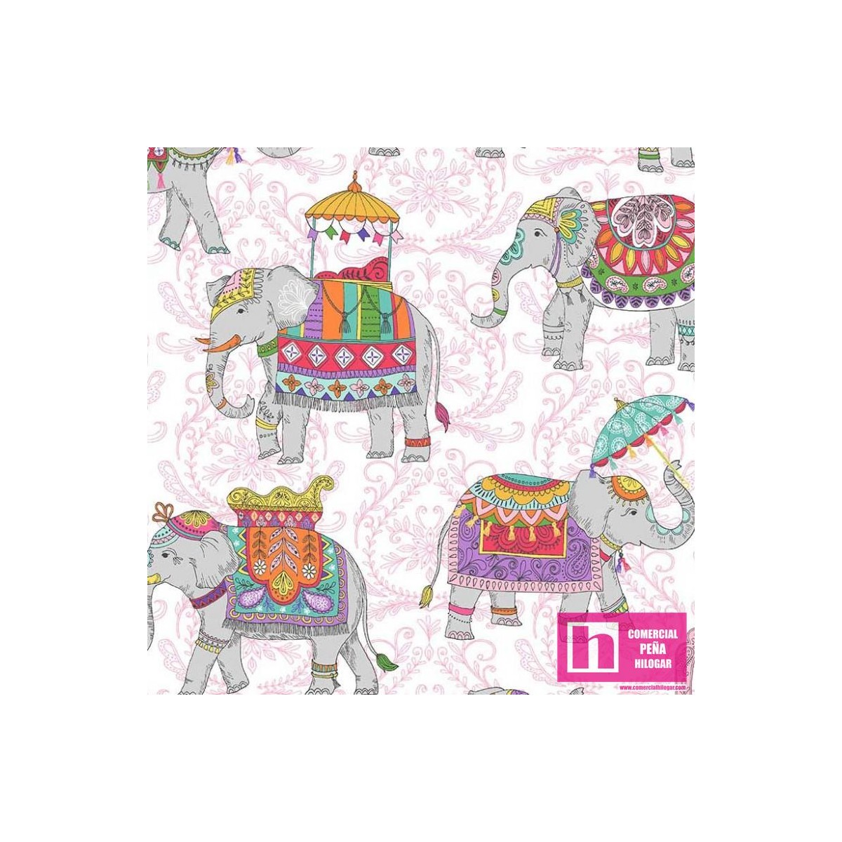 64846 PATCH.AMERICANO ELEPHANT CAVALCADE (02) 110 CM. ALGODON 100% BLANCO/ROSA Venta en piezas de 6.80 M