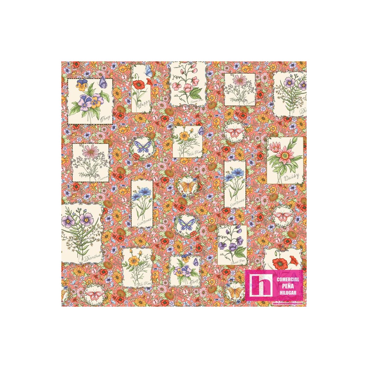 P17-MAS10120-P PATCH. AMERICANO GARDEN STROLL (21) 110 CM. ALGODON 100% CORAL/MULTI Venta en piezas de 7.00 M