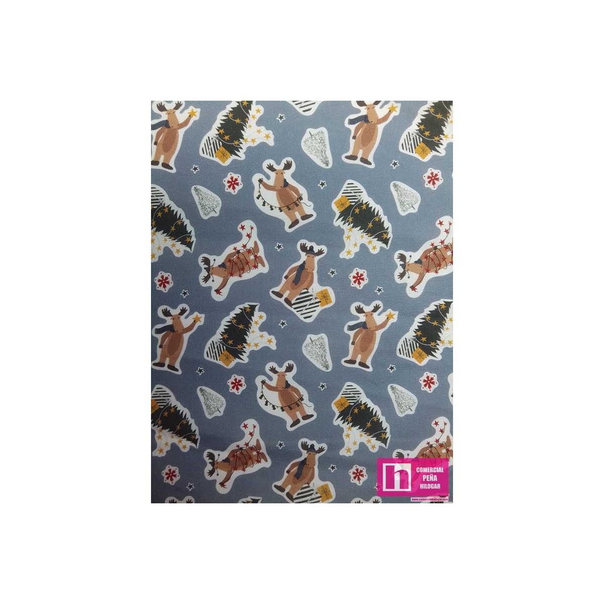 65334 TEJIDO ESTAMPADO NAVIDAD HOLLY (03) 1.50 M. -115 GR/M2-ALGODON 100% GRIS Venta en piezas de 1.00 C
