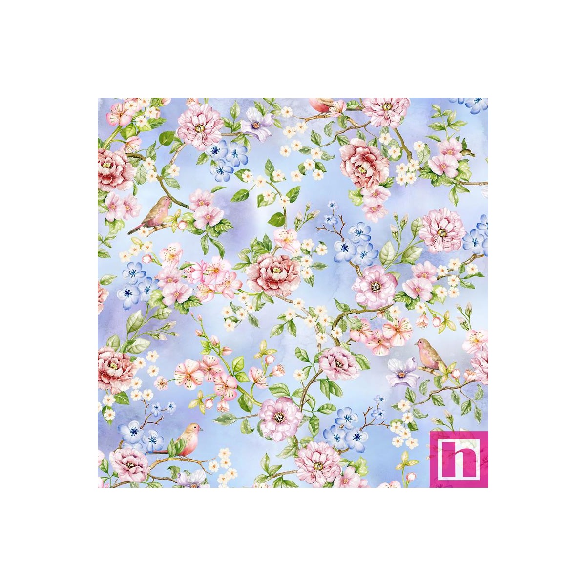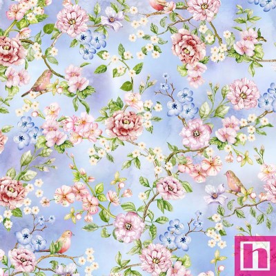 P121-CAME 5040B PATCH. AMERICANO CAMELIA (01) 110 CM. ALGODON 100% CELESTE/MULTI Venta en piezas de 7.00 M
