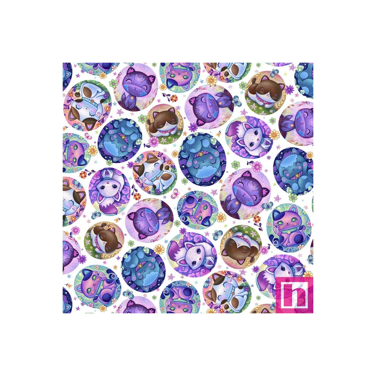 P121-CKIT5608W PATCH. AMERICANO CRAZY KITTIES (02) 110 CM. ALGODON 100% BLANCO/MULTI Venta en piezas de 7.00 M