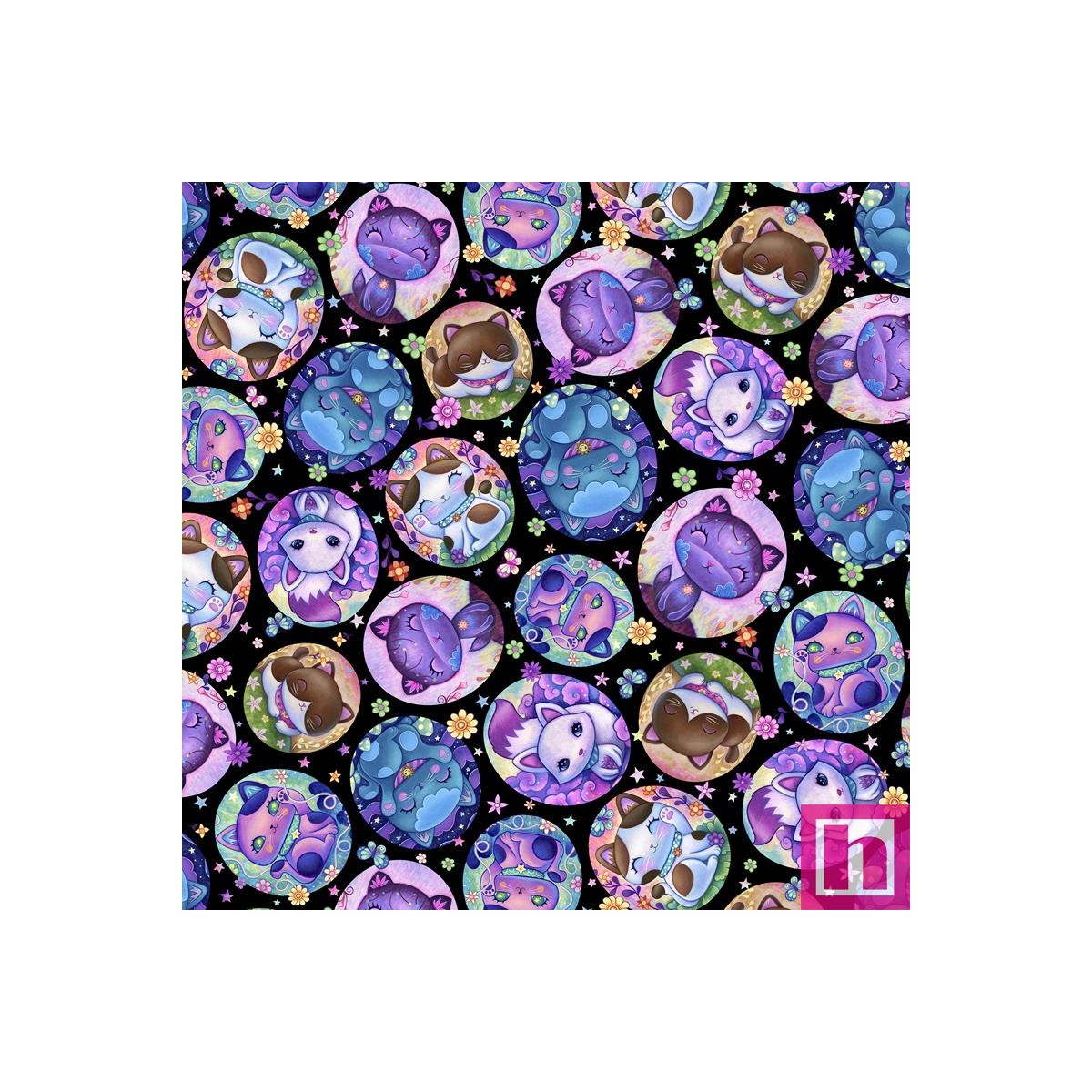 P121-CKIT5608K PATCH. AMERICANO CRAZY KITTIES (03) 110 CM. ALGODON 100% NEGRO/MULTI Venta en piezas de 7.00 M