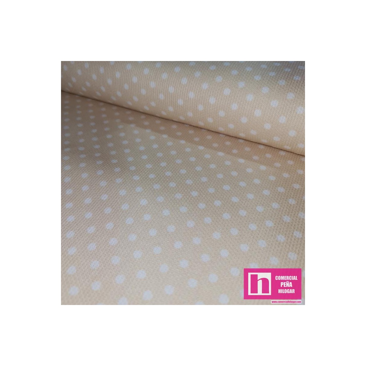 64172-0001 PIQUE ESTAMPADO BERNAL (13)-TOPOS 1.60 M. 170 GR/M2. ALGODON 100% BEIG/BLANCO Venta en piezas de 6.00 M