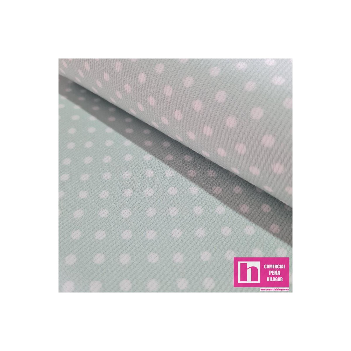 64172-6005 PIQUE ESTAMPADO BERNAL (15)-TOPOS 1.60 M. 170 GR/M2. ALGODON 100% AGUA/BLANCO Venta en piezas de 6.00 M