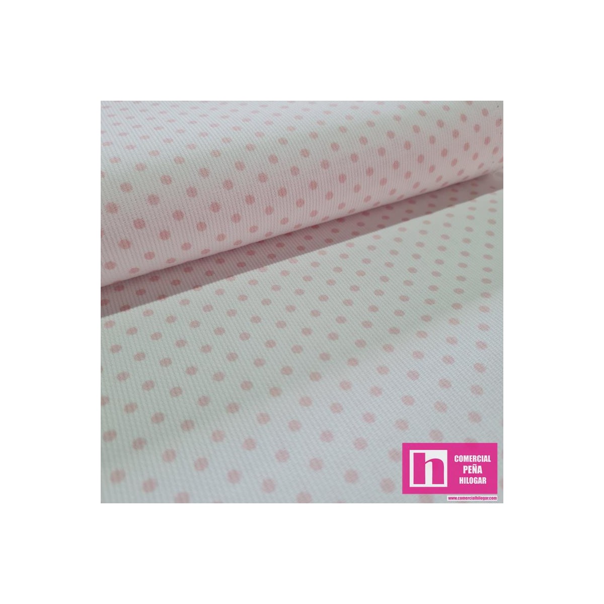 64173-4000 PIQUE ESTAMPADO BERNAL (17)-TOPOS 1.60 M. 170 GR/M2. ALGODON 100% BLANCO/CHICLE Venta en piezas de 6.00 M