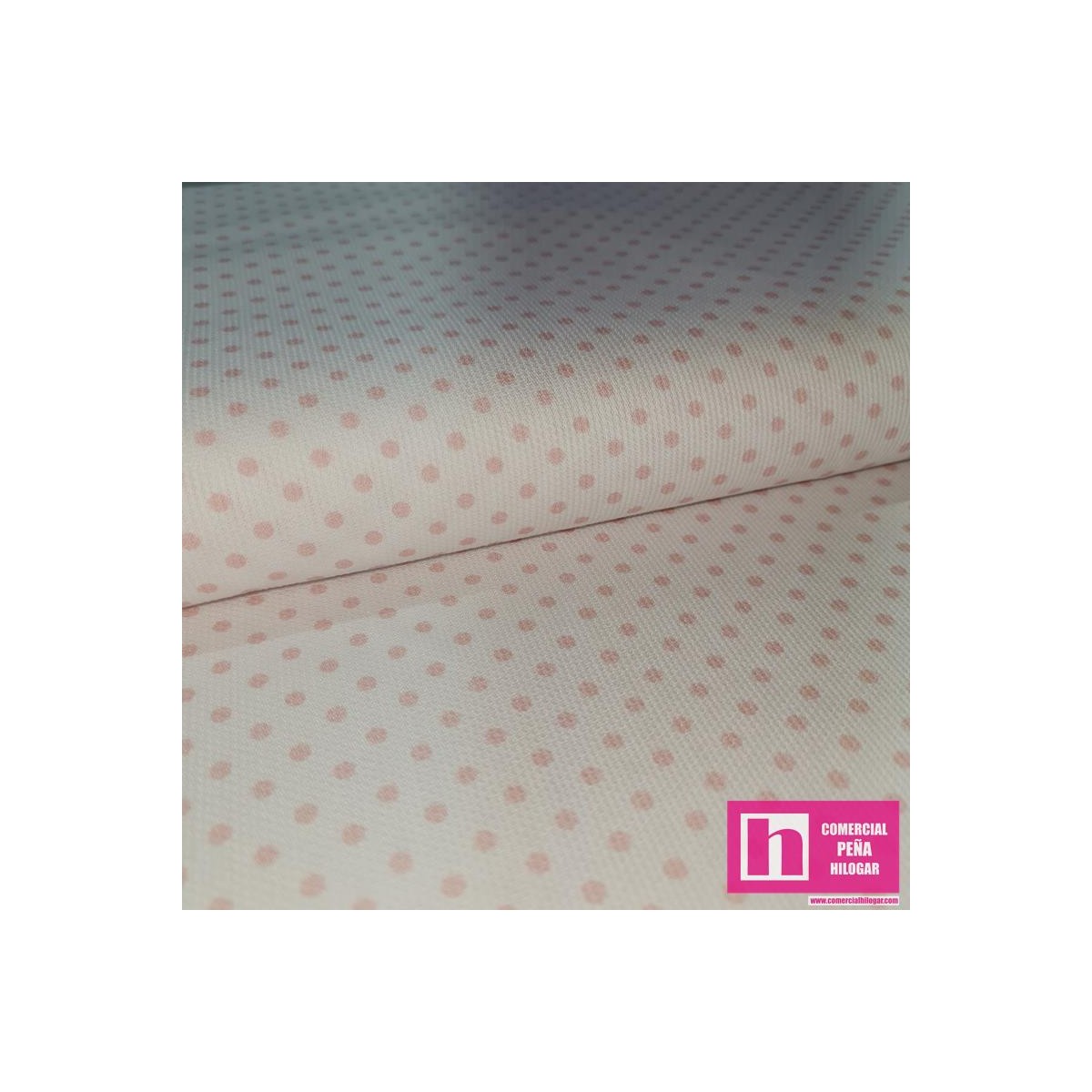 64173-4010 PIQUE ESTAMPADO BERNAL (18)-TOPOS 1.60 M. 170 GR/M2. ALGODON 100% BLANCO/ROSA Venta en piezas de 6.00 M