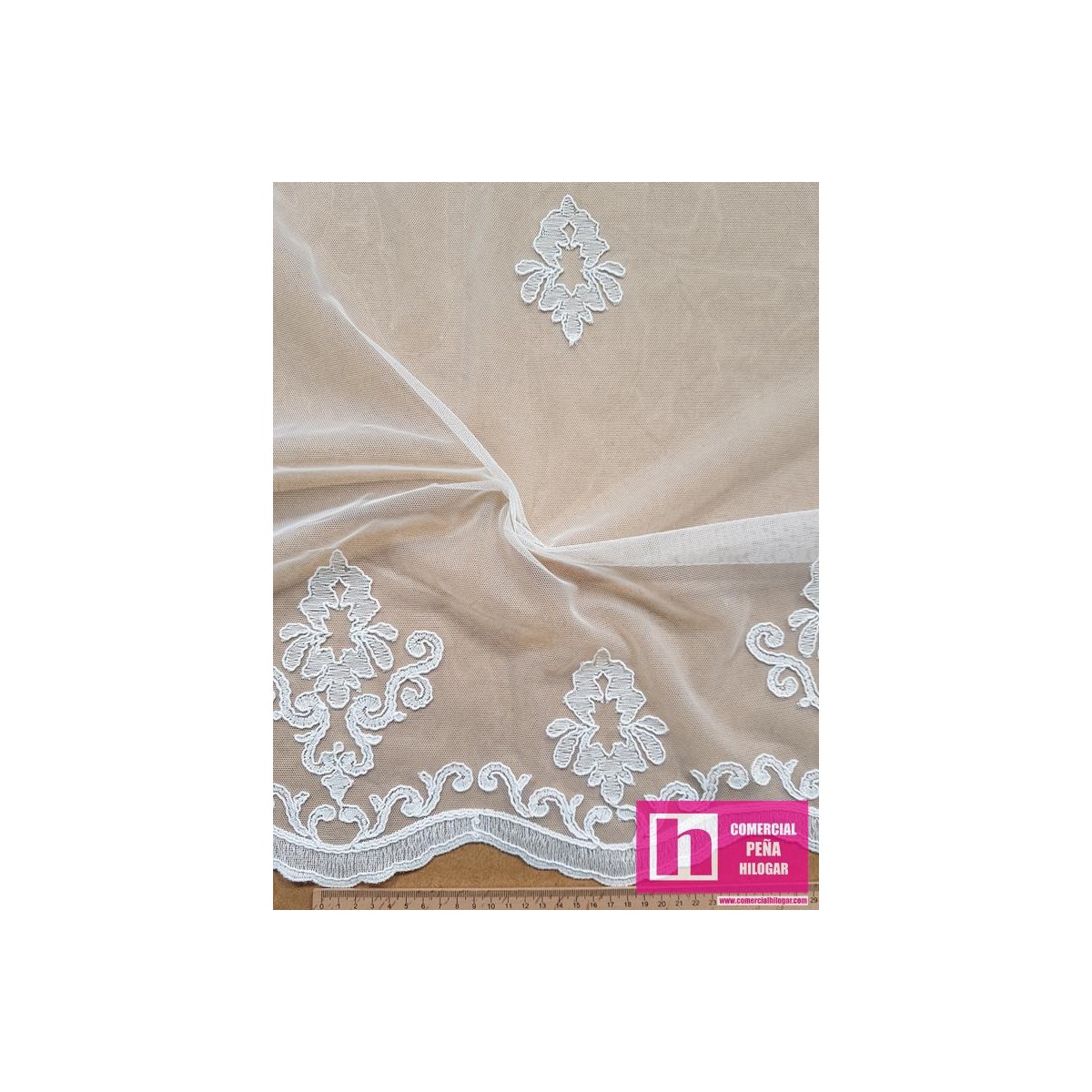 59456 YETER TUL BORDADO AMBOS LADOS 1.50 MTS. POLIESTER 100% NATURAL Venta en piezas de 15.00 M