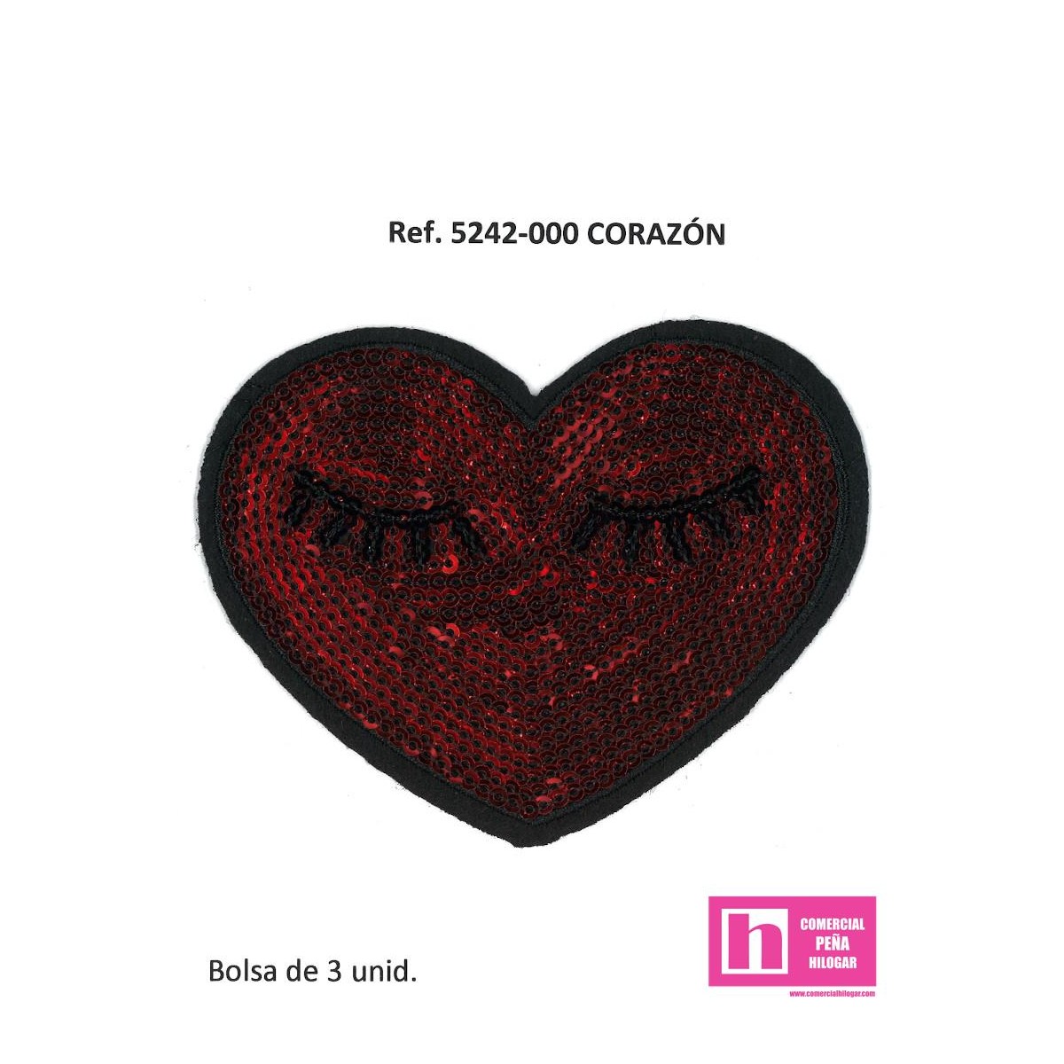 5242-000 APLICACION TERMOADHESIVA CORAZON FANTASIA 100 X 80 MM POLIESTER 100% ROJO Venta en piezas de 3.00 U